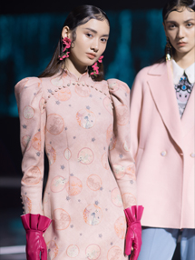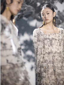 本季CHIU?SHUI(秋水伊人)設(shè)計(jì)師們?cè)谏衩啬葹跛弓h(huán)的啟發(fā)下,探索極簡(jiǎn)主義與極繁主義并存、復(fù)古與未來(lái)互融的復(fù)雜美學(xué)。